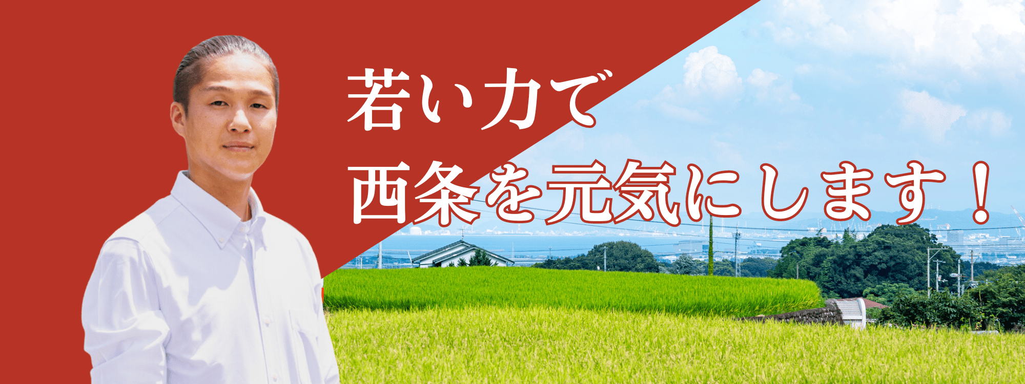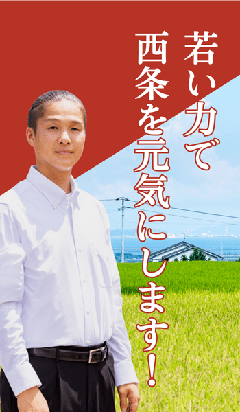 地域を元気にしていくためには、若い力が必要です。若者が自らまちづくりに参画する機会と風土を作っていきます。若者らしい発想と行動力によって、西条の魅力を再発見し、古き良き伝統を大切に守りながらも、時代に即した新しい風を吹かせていきます。また、西条の魅力を国内外に発信していくことで、経済効果を高めるだけでなく、個性豊かな人材が交流できる、活気ある西条市を目指します。